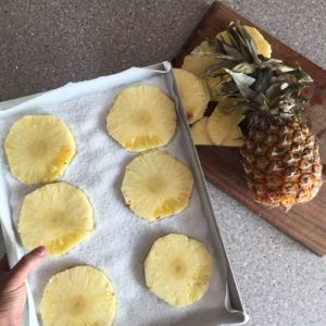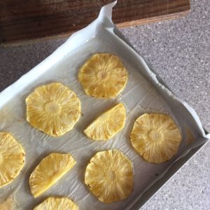 - Per ottenere l'ananas semi-disidratato: infornare la teglia a 100 gradi per 1 ora